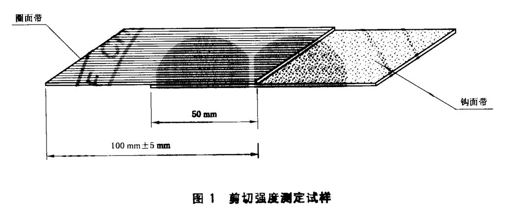剪切強度是在規定的試驗條件下,將粘扣帶有效閉合區域沿其長度方向以恒定速度拉伸,使鉤面帶和圈面帶平行分開每單位面積所需的最大力。